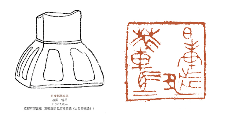 現存傳世與著錄的烙馬印,印文內容豐富且指向明確,代表性印例包括「郤駘」「常騎」「曲革」「靈丘騎馬」「曠都率車馬」等。這些印文可分為三類:一是監牧機構標識,如「曲革」可能對應某處牧監;二是馬匹用途標註,如「常騎」「靈丘騎馬」表明馬匹用於騎乘;三是統馭者標記,如「曠都率車馬」可能與軍事車馬統帥相關,印文內容直接反映馬匹的管理屬性。