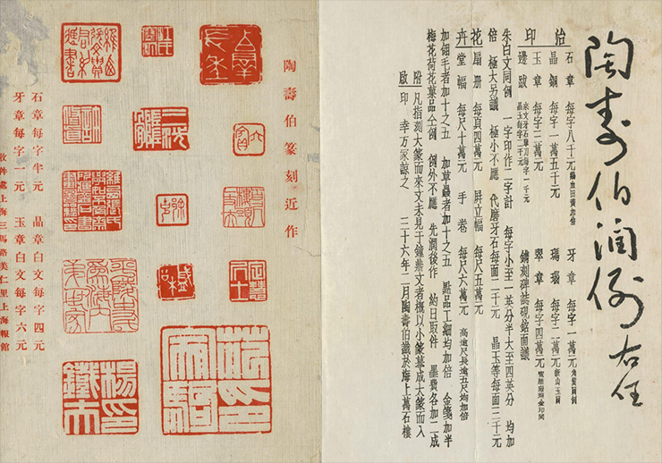 然而,在「君子喻於義,小人喻於利」的傳統觀念下,直接論錢計價,終被視為有礙文士體面。故當時許多篆刻名家之潤例,並非由本人直白書寫,而多由諸位名士好友代為擬定、宣揚。此舉一則借名士之聲望為其藝術背書,抬升身份;二則以第三方之口道出經濟訴求,為印家保留了文人的雅士風度與顏面,可謂一種極具中國傳統文化特色的智慧與風雅。
