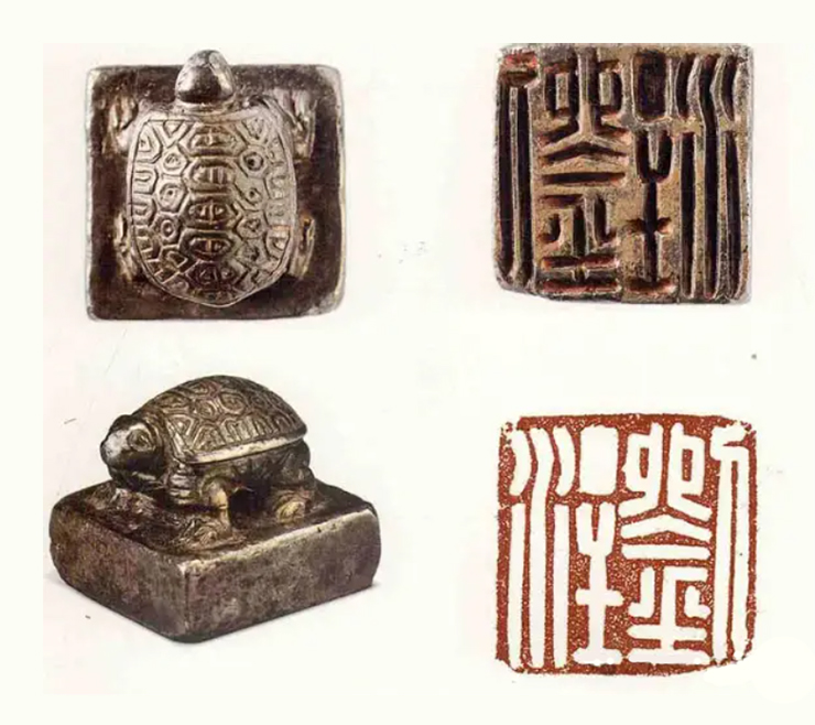 《漢書·百官公卿表》明確記載:「凡吏秩比二千石以上皆銀印。」而唐代顏師古為此作注時,更引述《漢舊儀》之細節:「銀印背龜鈕,其文曰章。」此條文獻至為關鍵,它不僅說明了高等級官員(如秩比二千石之太守、都尉等)所用銀印的形制特徵——龜鈕,更清晰地揭示了這類官印的印文通例——最後一字須鐫「章」字。此一制度在《漢書·朱買臣傳》的敘事中得到了生動印證:當朱買臣被任命為會稽太守後,其官印即被描述為「會稽太守章」。此「章」字於方寸之間,既是其職權的合法憑證,亦是其身份的直觀標誌。